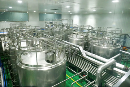该项目是由陕煤集团投资组建的精准扶贫项目,是以当地红枣为原料优势,专注开发与生产红枣原汁、浓缩汁、口服液,活菌型/非活菌型发酵红枣汁,复配型红枣汁、非活菌型发酵红枣汁,以及其他发酵果汁等产品;该产线是集中央控制系统和生产报表系统于一体的高智能化大型全自动生产线。