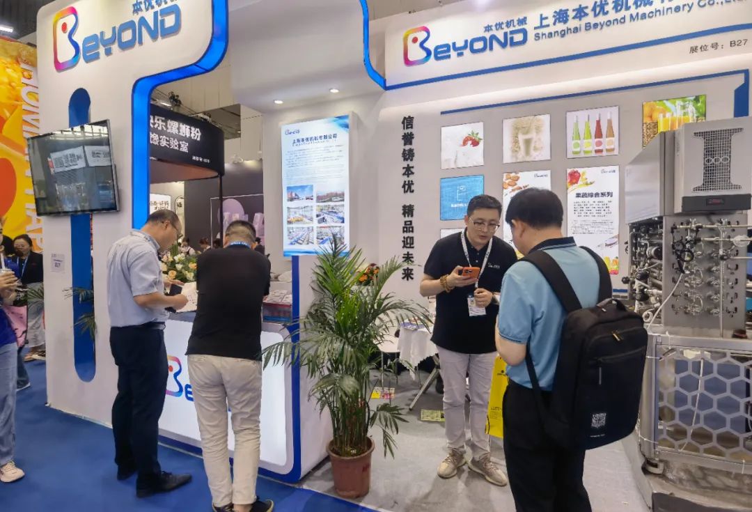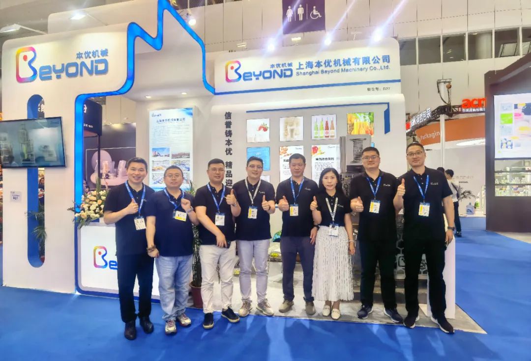FBIF 2023重磅回归,现场盛况空前。开展期间,现场人潮汹涌。 本优团队凭借专业技术优势和高端产品性能,吸引了饮料行业众多企业的驻足咨询,本优机械展位前的参展者络绎不绝,大家积极前来洽谈合作。