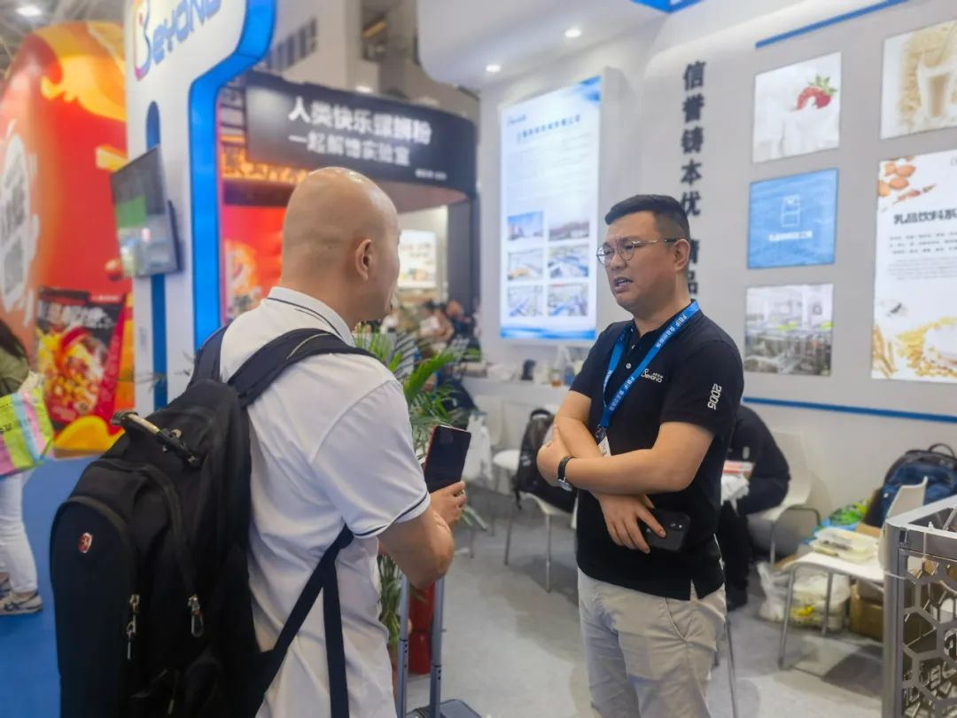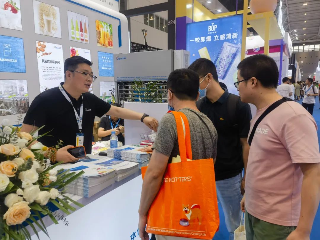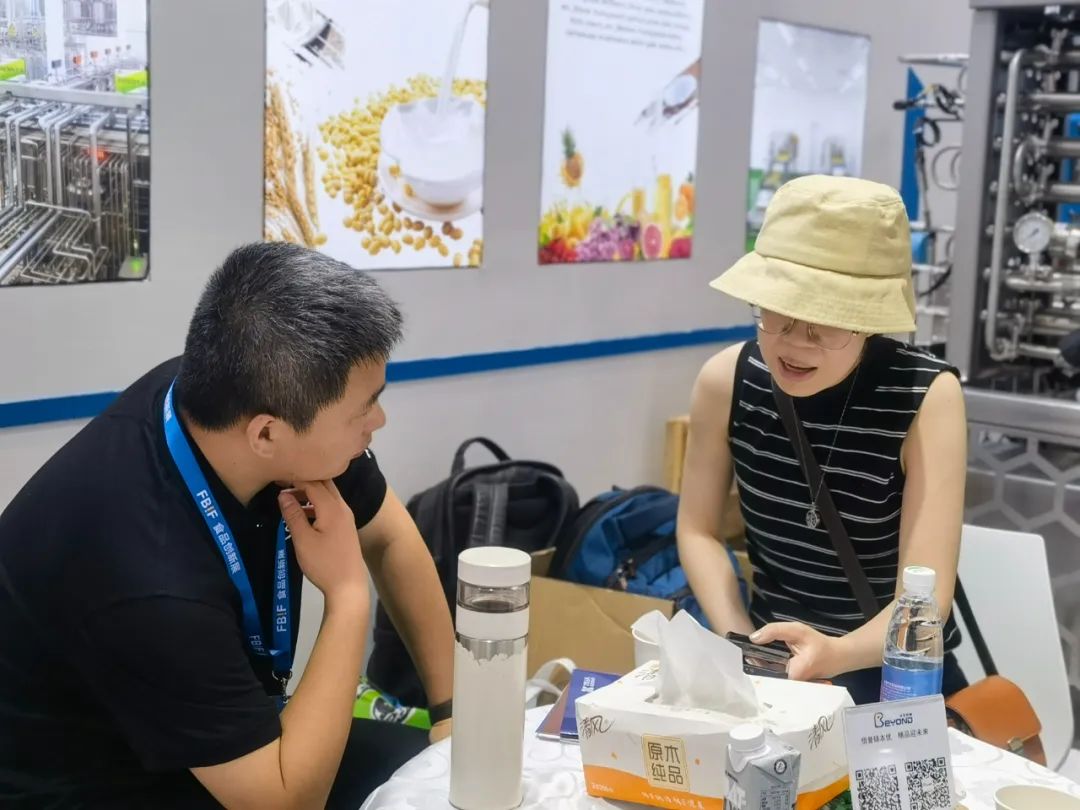 本优团队全面地向客户讲解乳品饮料、果汁果酒、植物基等针对健康设备领域的的创新技术与解决方案,结合客户实际情况详细阐述本优创新性的设备特点及应用、系统和服务,以多种形式为客户提供灵活的观展体验。