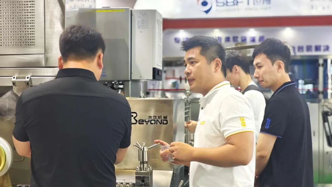 展会首日,本优展台人头攒动,吸引了大批专业观众的目光。作为行业内的高新技术企业,我们展示了12T/H蒸汽直喷杀菌机、50L发酵双联体、实验室成套机组、双道打浆机等产品,充分展示了公司在乳品饮料、果蔬汁、生物发酵/制药以及综合食品等领域的先进理念和技术实力。