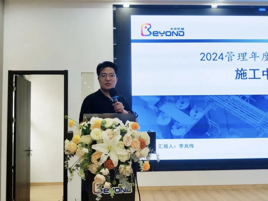施工中心总监李兆伟全面总结了本优在24年项目完工情况及施工团队建设,从安全、质量、进度和成本控制等各方面做了汇报,加强施工现场的5S管理,重点提出将施工人员的工时管理作为2025年度的重要工作,并与项目、技术、采购、生产等各部门协调配合,对施工成本做到精准预算和动态核算。